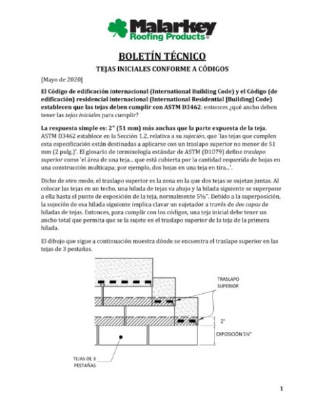 Boletín Técnico: Tejas Iniciales Conforme a Códigos (Español)