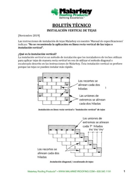 Boletín Técnico: Instalación Vertical de Tejas (Español)