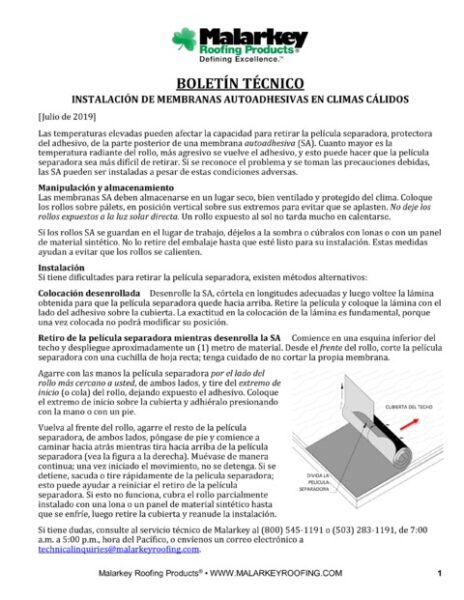 Boletín Técnico: Instalación de Membranas Autoadhesivas en Climas Cálidos (Español)