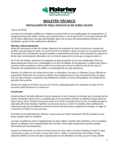 Boletín Técnico: Instalación de Tejas Asfálticas en Clima Cálido (Español)