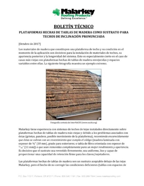 Boletín Técnico: Plataformas Hechas de Tablas de Madera Como Sustrato para Techos de Inclinación Pronunciada (Español)