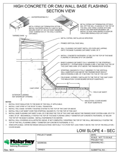 LS4: High Concrete CMU Wall Base Flashing DWG