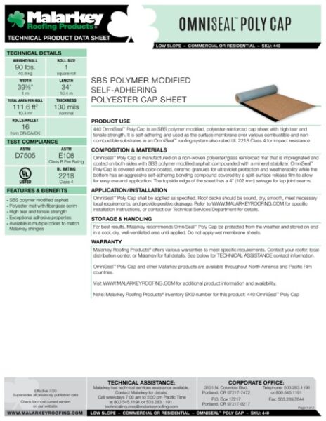 440 OmniSeal Poly Cap (Discontinued) Tech Data
