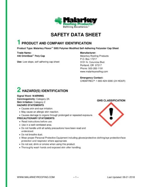 440 OmniSeal Poly Cap (Discontinued) Safety Data Sheet