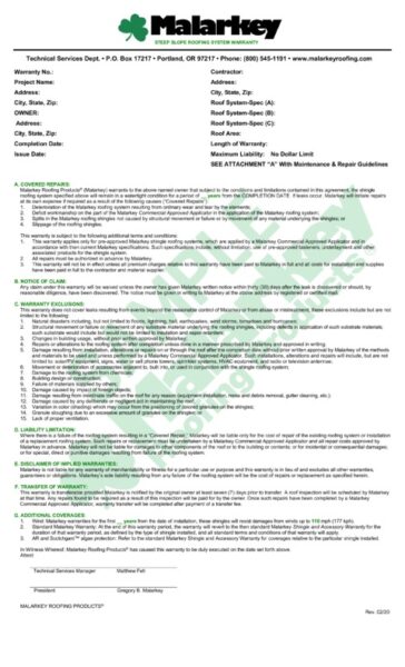 Steep Slope NDL Warranty - Sample