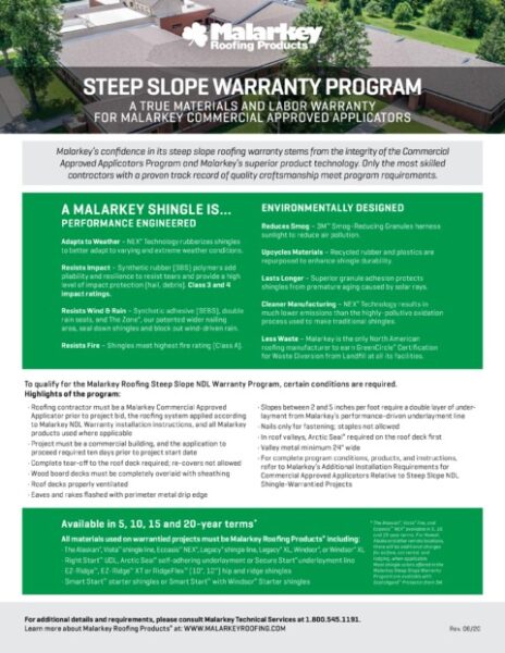 Steep Slope NDL Warranty Flyer