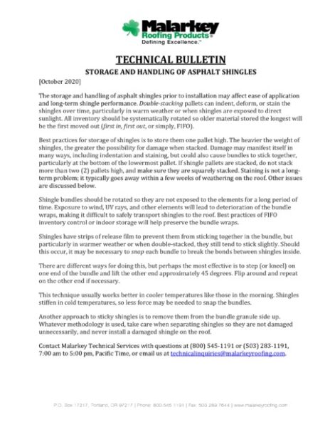 Technical Bulletin: Storage and Handling of Asphalt Shingles