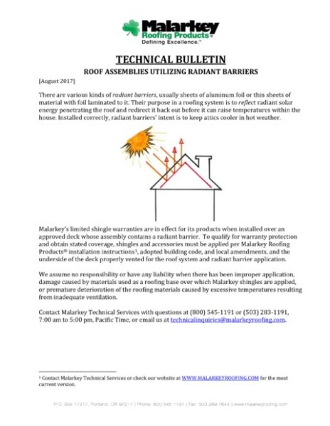 Technical Bulletin: Roof Assemblies Utilizing Radiant Barriers