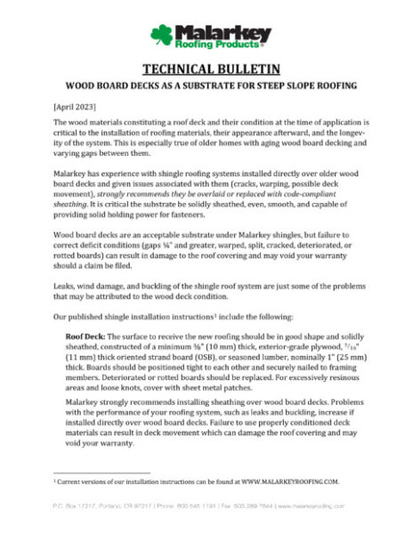 Technical Bulletin: Wood Board Decks as a Substrate for Steep Slope Roofing