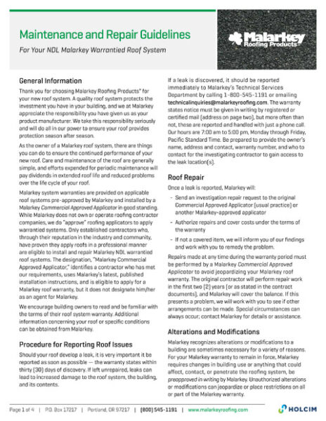 NDL Warranties Maintenance & Repair Guidelines