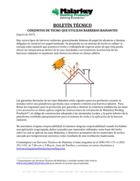 Boletín Técnico: Conjuntos de Techo que Utilizan Barreras Radiantes (Español)