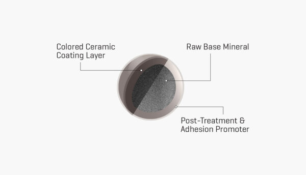 Dense, non-porous, mineral is the core of the granule, providing strength and long-lasting, weather-resistant durability.