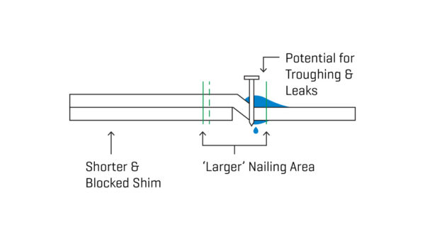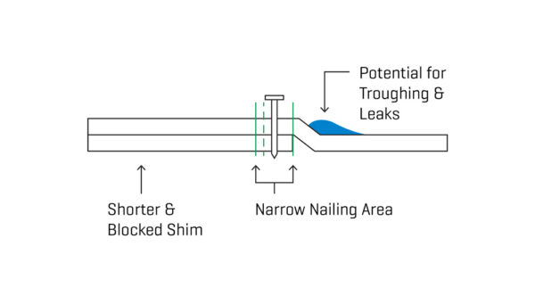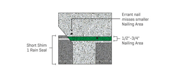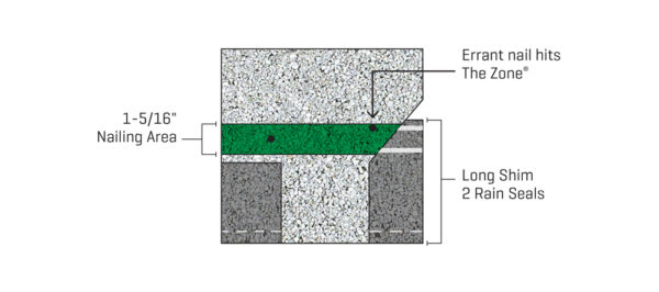 The point of a larger nailing area is to help ensure that every nail hits and penetrates both shingle layers, where the two shingle layers overlap, in order to properly secure the shingle to the roof, and protect against shingle uplift and blow-off.