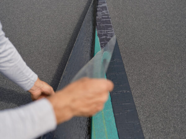 Self-adhered membranes have a factory-applied split-release film that protects the adhesive and is removed during installation.