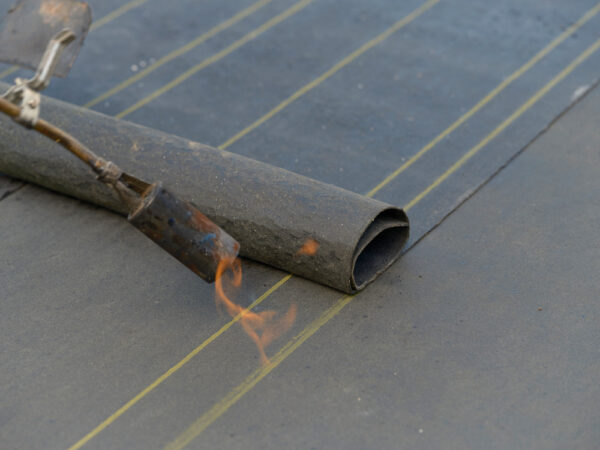 Sheet is applied via hot asphalt. Asphalt is naturally sticky, even more so when heated. During installation, liquified asphalt is spread across the roof, filling voids, cracks and other unseen penetrations, and adheres layered membranes to ensure a watertight roofing system.