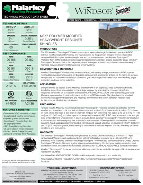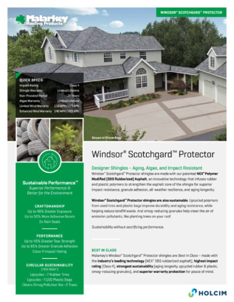 Windsor® Scotchgard™ was the industry’s first designer shingle to be constructed of polymer modified asphalt, opening the benefits of this superior shingle-making technology to the highest shingle category.