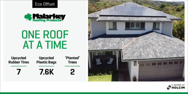 Each roof matters to us and everyone adds up to our greater goal of increased sustainability for the roofing industry. In a recent release, we shared news that since the launch of the world’s first smog-reducing shingle, Malarkey Roofing Products has provided the industry with enough roofing materials to protect more than 400,000 roofs. Because each roof has the smog-fighting capacity of two to three trees, that’s the equivalent of over 1 million trees of smog-reducing power. At this level, beyond the smog-reduction, the volume of upcycled tires and plastic bags is truly significant as well.